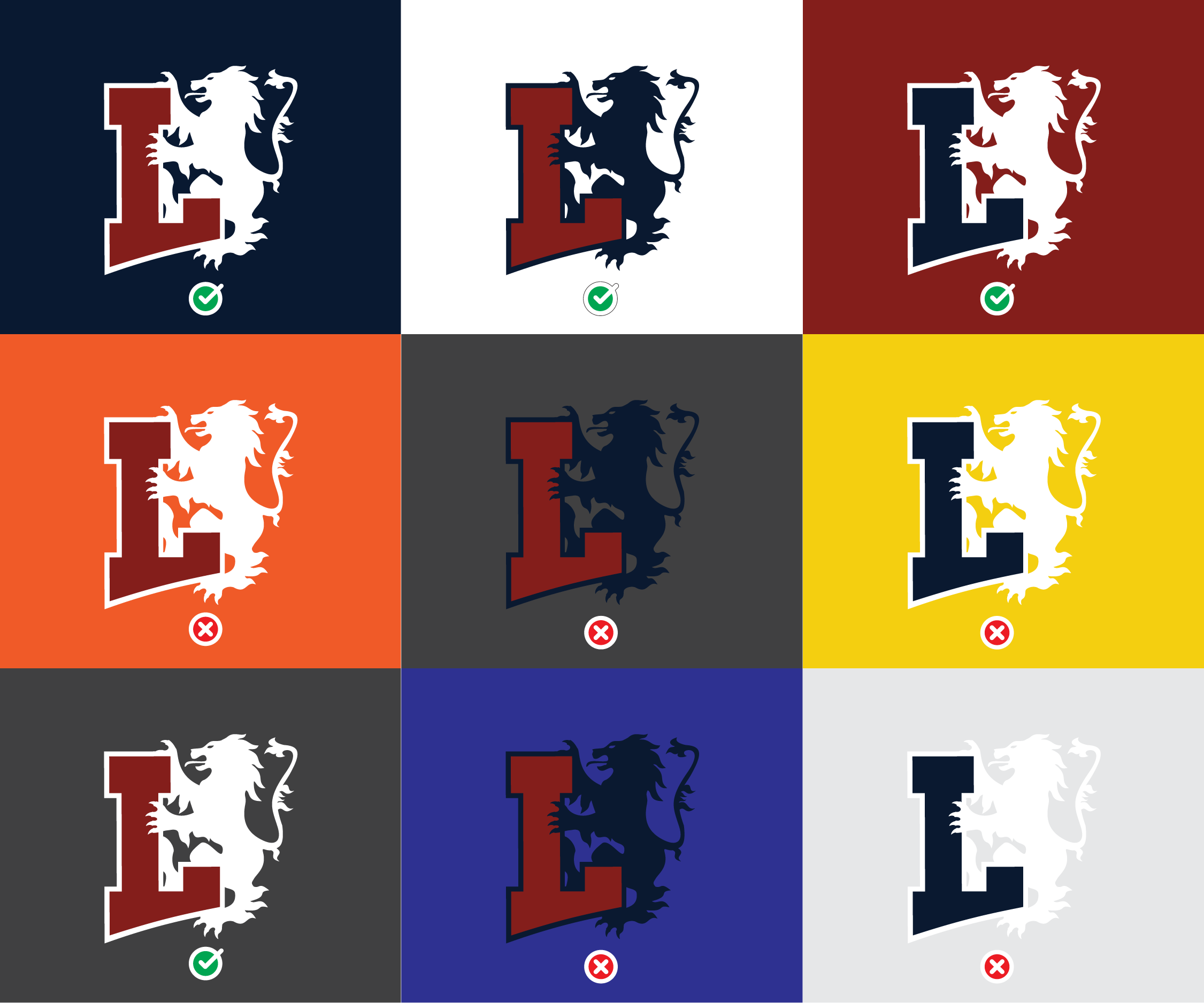 On white or light backgrounds, the Lyon Brand Mark should be printed in Navy withCrimson trim.