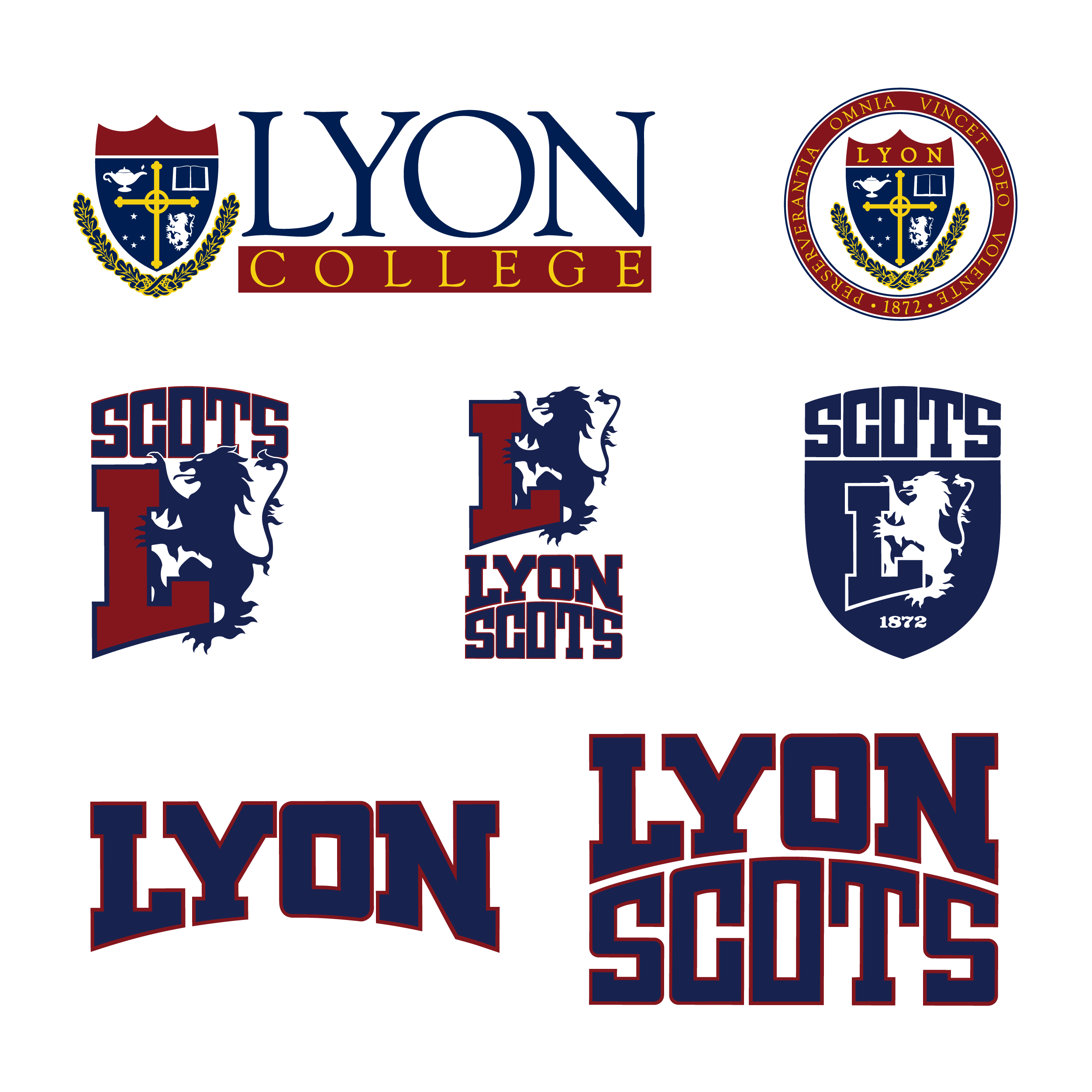 The Primary Athletic Mark is made up of two parts: the 'L' and a rampant lion. The 'L' is pulled directly from Lyon Brand Mark. The lion rampant is from the college seal. A symbol of bravery and strength, the lion rampant exudes honor and tradition while directly reflecting the history and Scottish heritage of the College. This logo can be used on official documentation, letterhead, and business cards. This logo works best when paired with the Lyon Brand Mark. The Athletic Mark is for use by Athletic and Affinity/Club sports only.