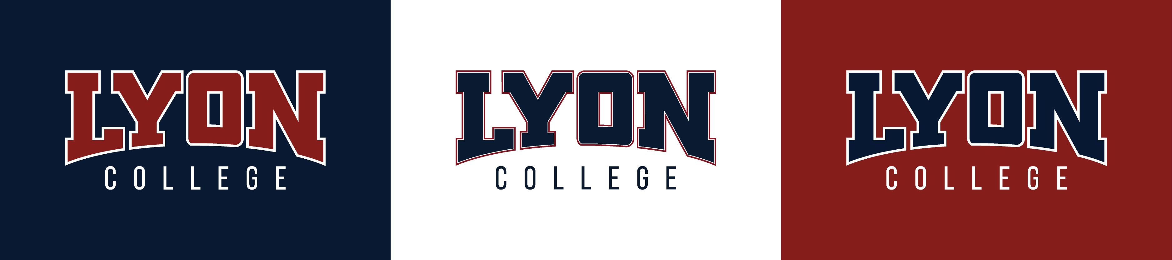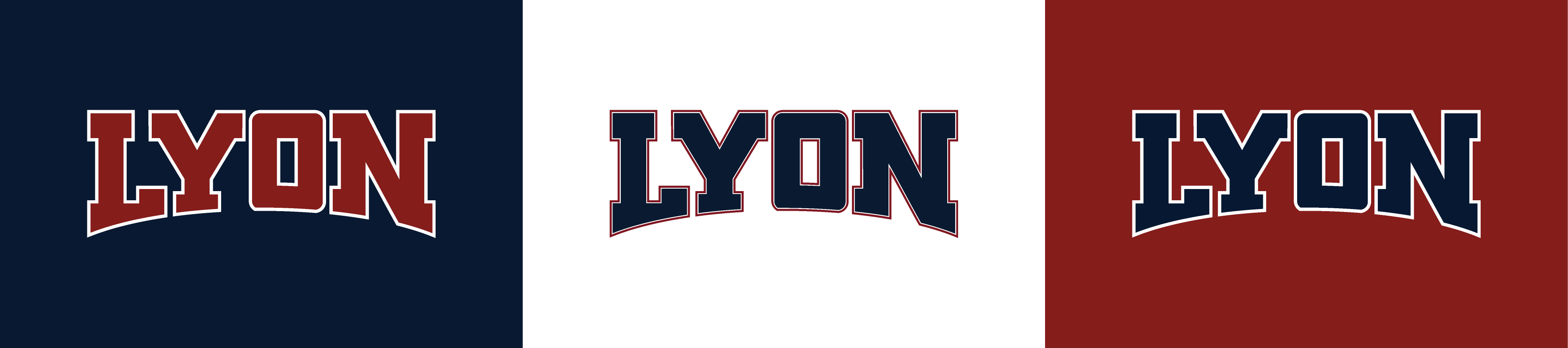 The Wordmark is the mostrecognizable portion of the Lyon Brand Mark. It may be used on its own for apparel or paired with the Primary Athletic Mark. The wordmark is the best symbol for the front of a uniform. It embodies the bold character of the College. As seen here, it comes in three color combinations.
